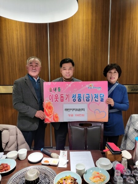 송내동장은 “모두가 어려운 시기에 따뜻한 나눔을 실천해주셔서 감사하다 이번에 기부해주신 성금은 관내 어려움을 겪는 수급자, 복지사각지대 대상자 등을 위해 사용될 예정이다”고 전했다.