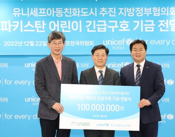 지구촌 어린이 아동권리 보장을 위한 기부- 유니세프아동친화도시 추진 지방정부협의회, 파키스탄 아동 구호기금 1억원 전달