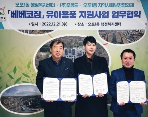 이번 협약으로 오포1동 저소득 영유아 가정에 분기별로 유아용 이불세트 및 기저귀 가방 등 1인당 80만원을 지원하기로 했으며 출산가정에 경제적 부담을 경감하고 출산 친화적인 사회분위기 조성 등에 상호 협력키로 했다.