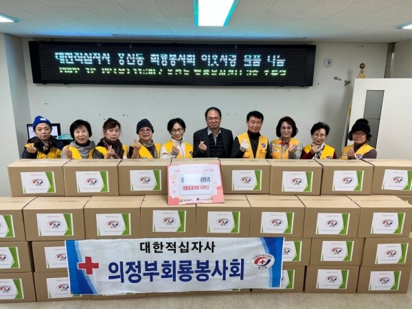 [뉴스서울] 의정부시 흥선동행정복지센터는 12월 22일 대한적십자사 흥선동 회룡봉사회에서 의정부시 100일 사랑릴레이 배턴 잇기 일환으로 즉석식품, 생필품 등으로 구성된 300만원 상당의 생필물품 60박스를 후원했다고 밝혔다.